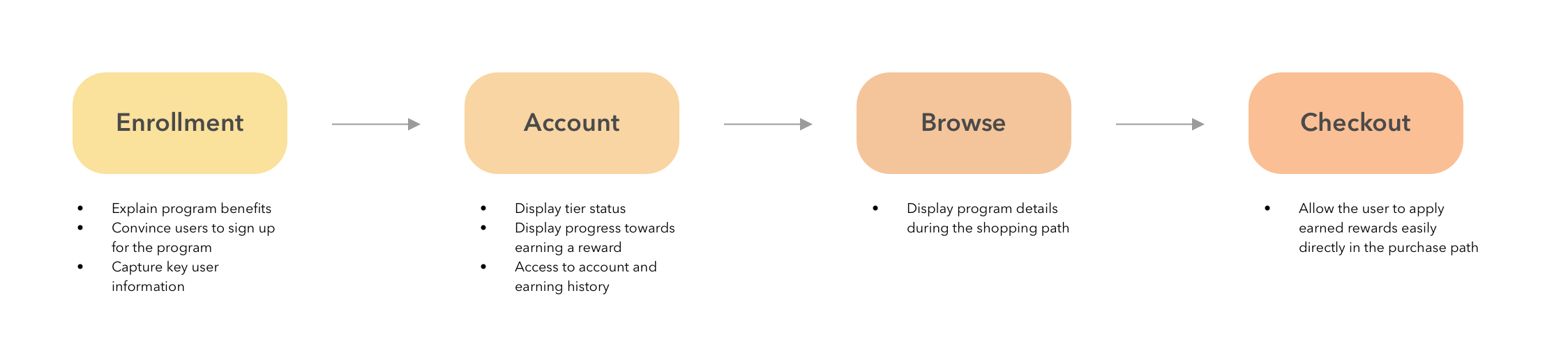 In our first designs of the experience, we put information about the user’s loyalty status and program benefits at the top of the page.