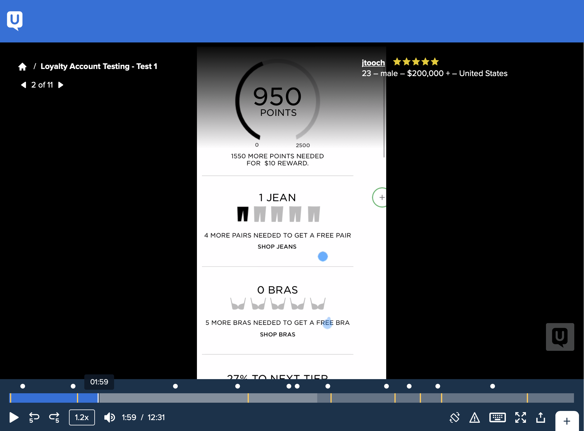15+ usability tests run throughout the entire project, run as remote unmoderated usability tests via usertesting.com with specific tasks.